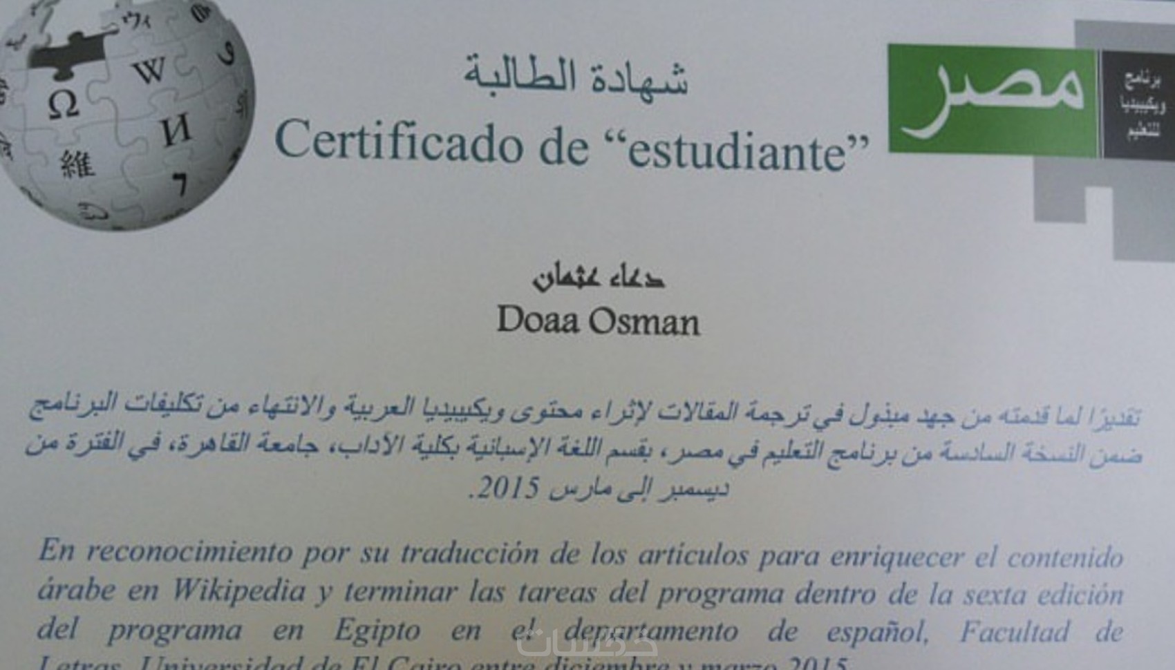 -حاصلة على شهادة شكر من ويكيبيديا لترجمة مقالات أدبية من اللغة الإسبانية إلى اللغة العربيه و العكس