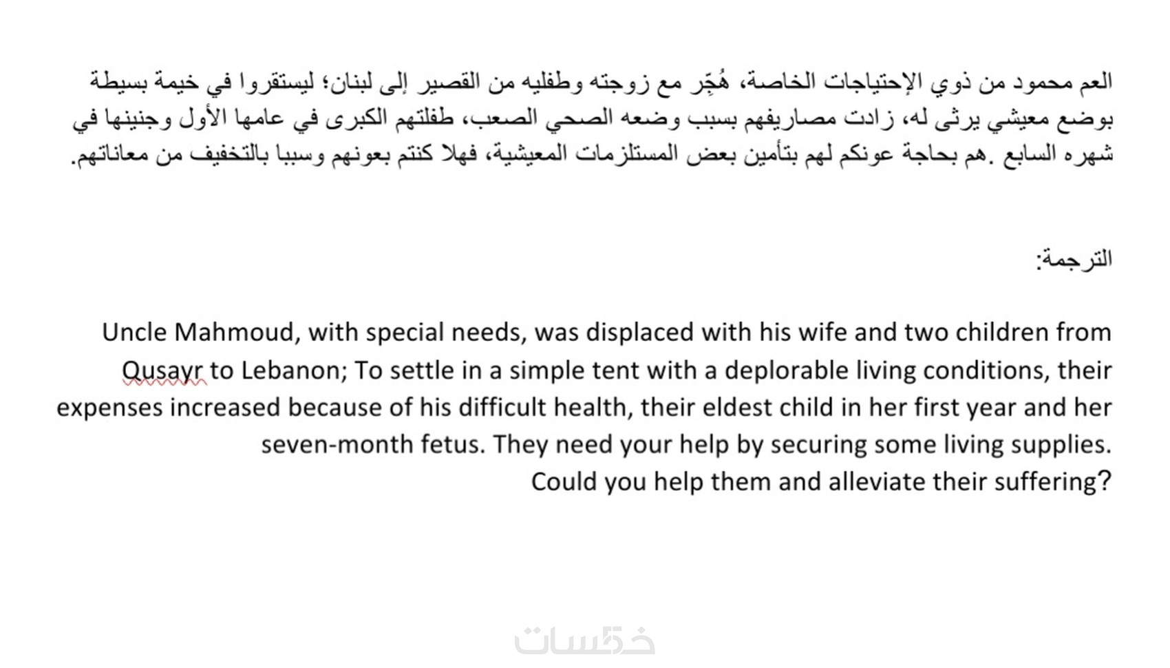 استطيع تقديم خدمة ترجمة مميزة نظرا لتخصصي في الترجمة و تعليم اللغة الإنكليزية ضمن المنظمات والجمعيات الخيرية