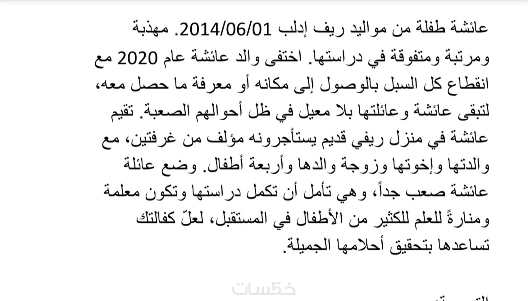خريجة كلية الآداب والعلوم الانسانية جامعة حلب قسم الترجمة الإنكليزية