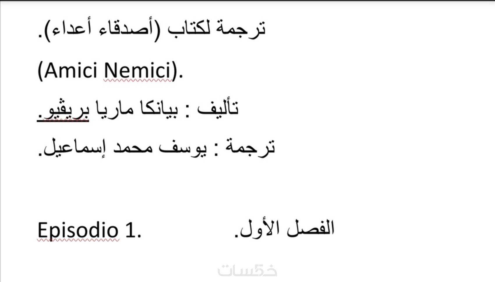 ٣٥٠ كلمة من الإيطالية إلى العربية.