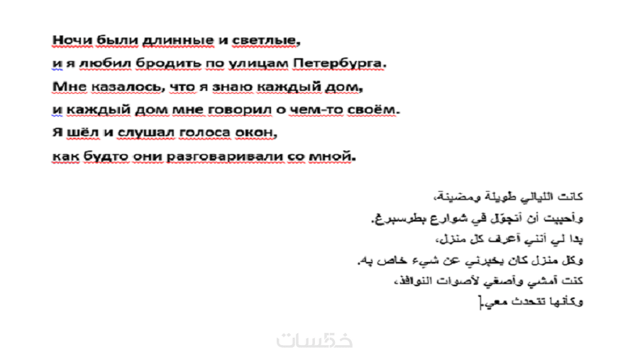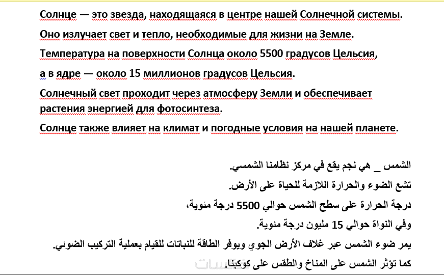 يسرني أن أقدّم خدمة ترجمة بين اللغة العربية واللغة الروسية بأسلوب واضح وطبيعي، مع الحرص على نقل المعنى الحقيقي للنص بدون ترجمة حرفية أو ركاكة في الصياغة.
