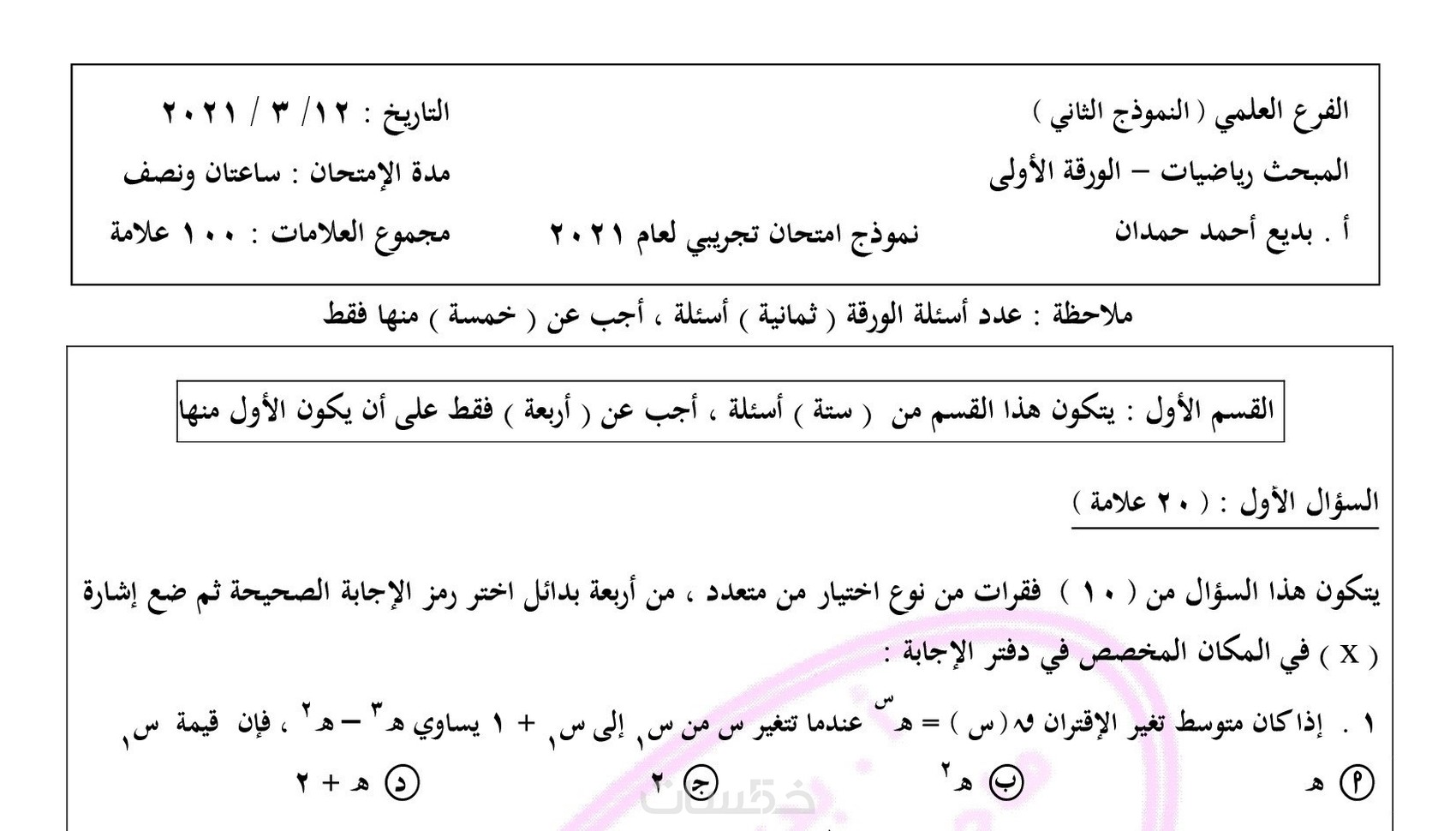 2- ترويسة وتنسيق امتحان أو ورقة عمل.
