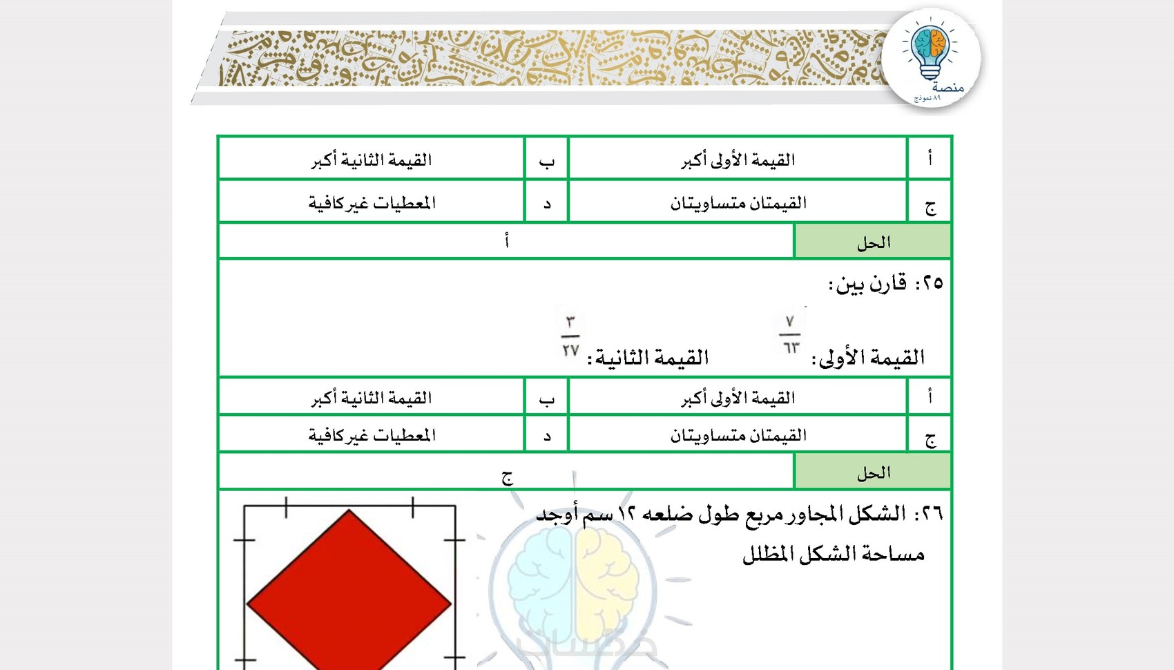 1- صفحتين وورد من المسائل الرياضية جاهزة للطباعة.