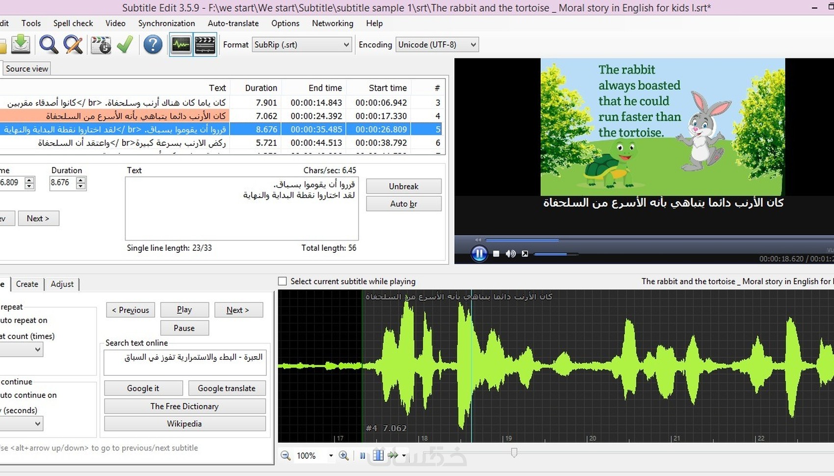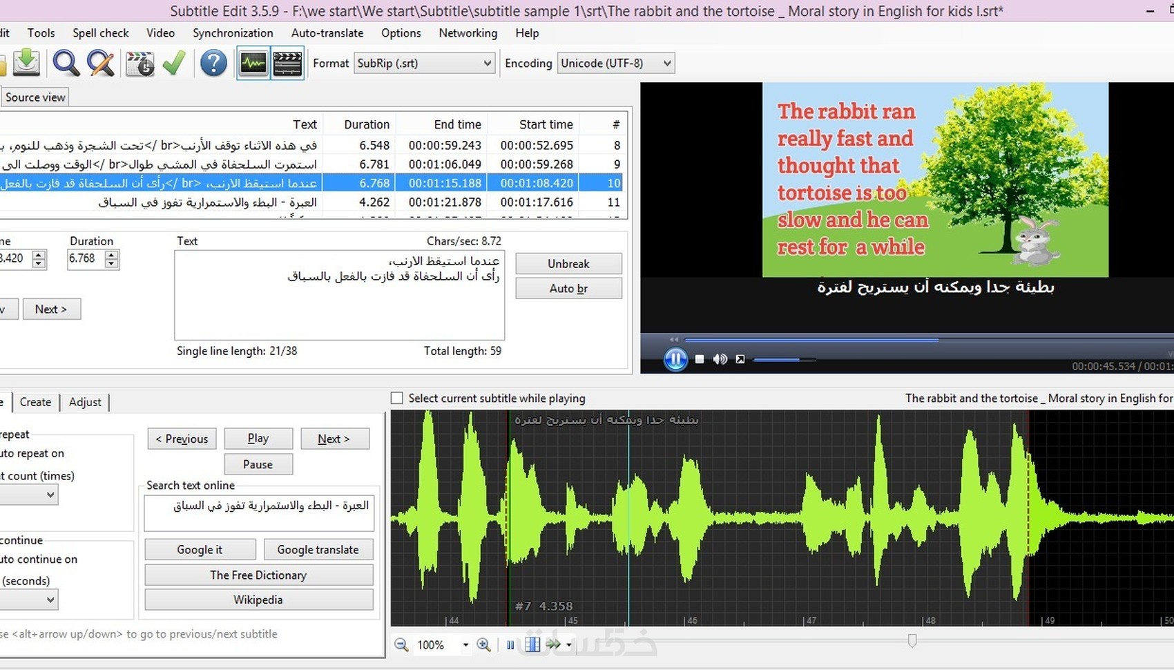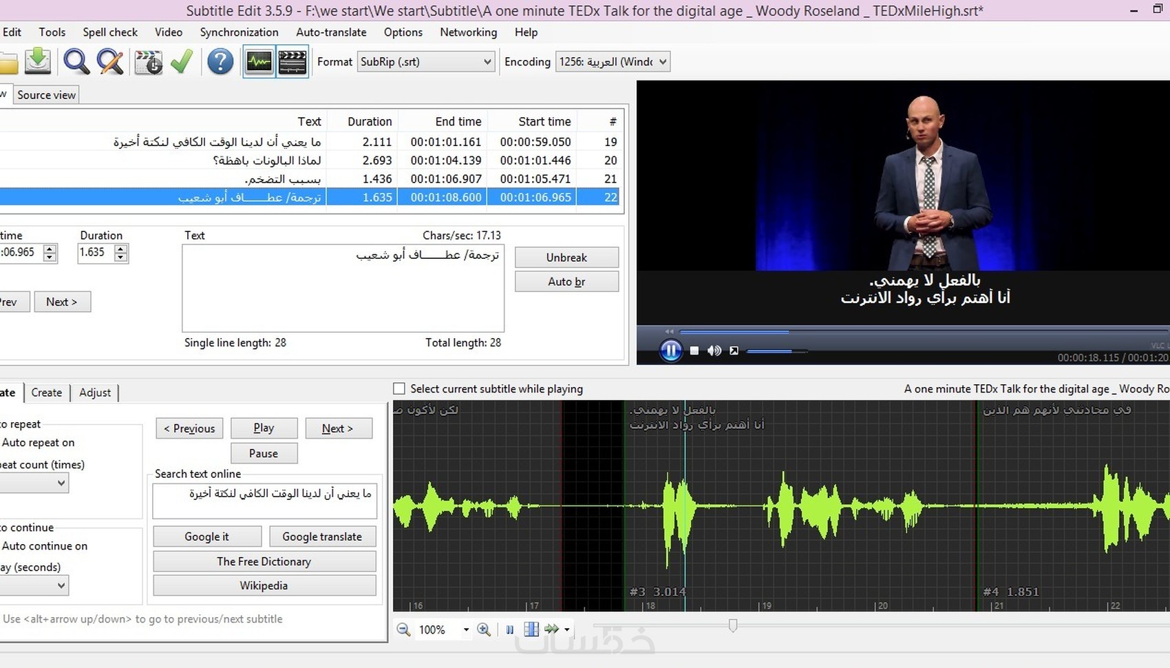 4️- إضافة الترجمة على برنامج subtitle edit لتدقيق الثواني لتفادي أي خلل في الترجمة المرئية.