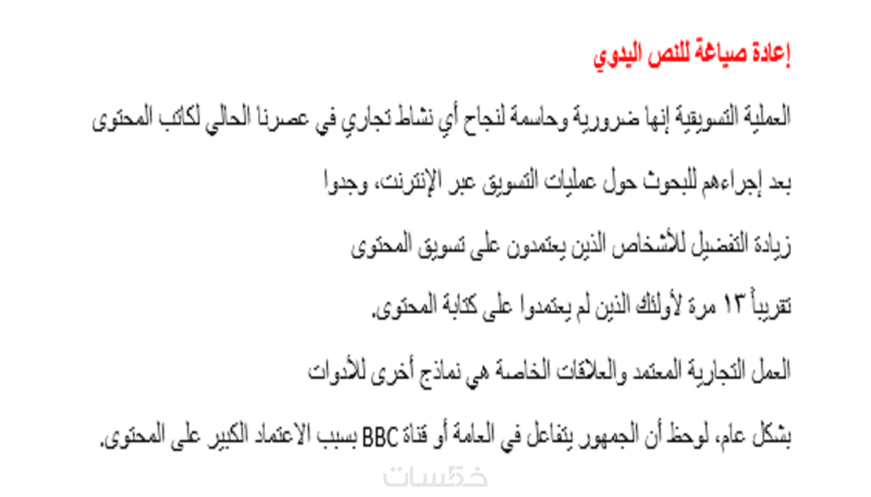 كتابة تلخيص للملف المفرغ كل 10صفح3500كلمة 350 كلمة للصفحة, لتصبح ملخصة 4 صفح بما يقارب 1400كلمة.