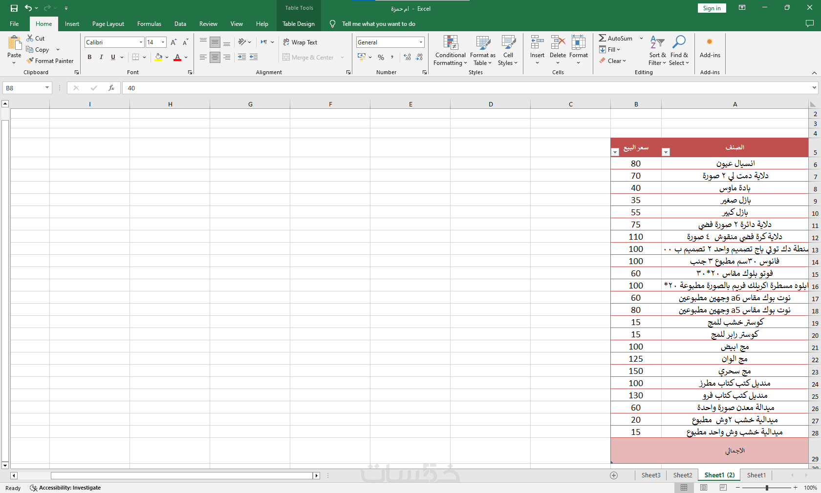 تنسيق الجداول وتظليل العناوين وتنسيق الأرقام حسب الطلب