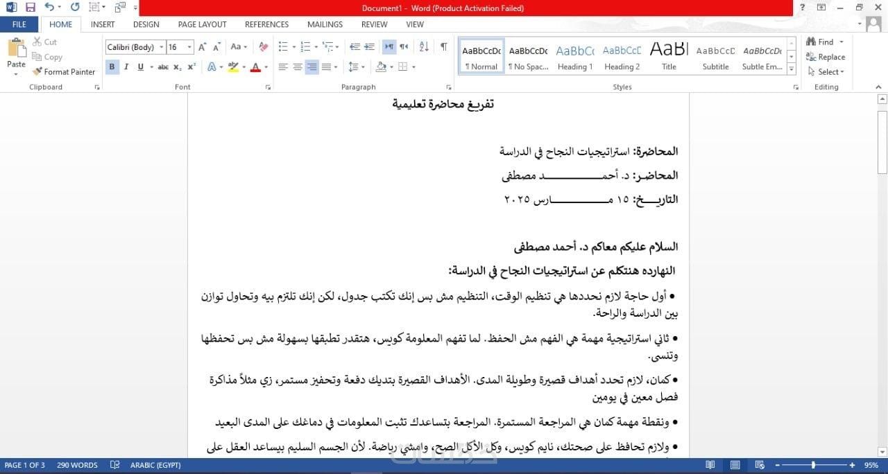 ملف بصيغتين Word و PDF منسق باحترافية وجودة عالية مع التدقيق اللغوي مطابق تماما للملف الأصلي الذي تم تفريغه