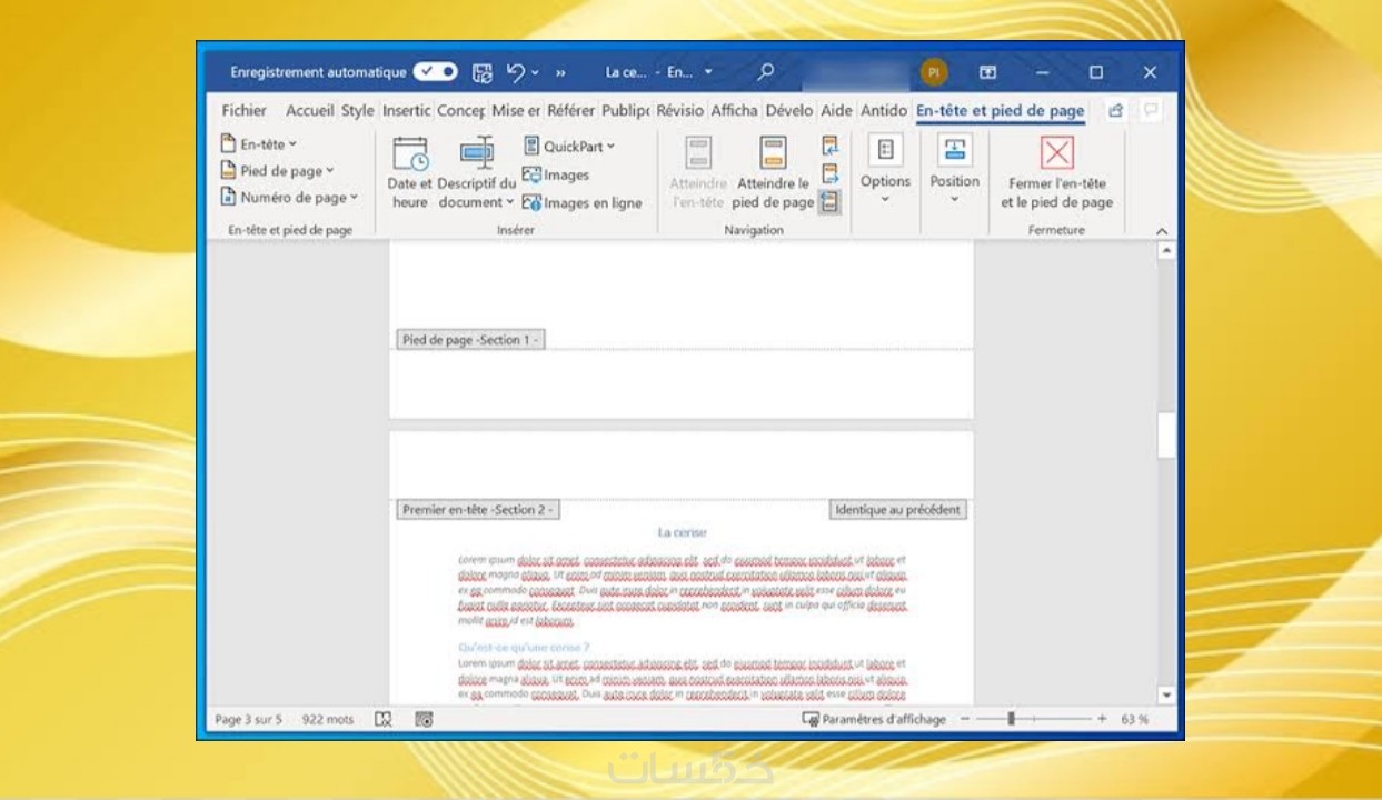 تنسيق النصوص والعناوين داخل الملف