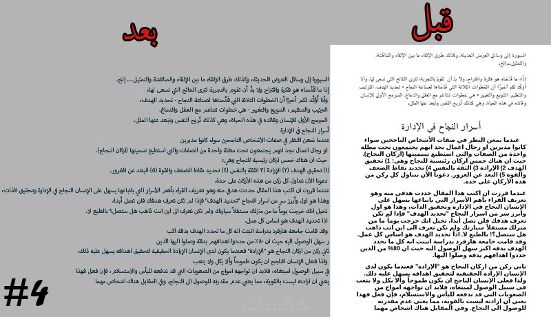 مراجعة وتنسيق النصوص يدويًا بعد التحويل، لضمان خلوها من الأخطاء الناتجة عن برامج OCR (مثل علامات غير مفهومة أو ترتيب غير صحيح).