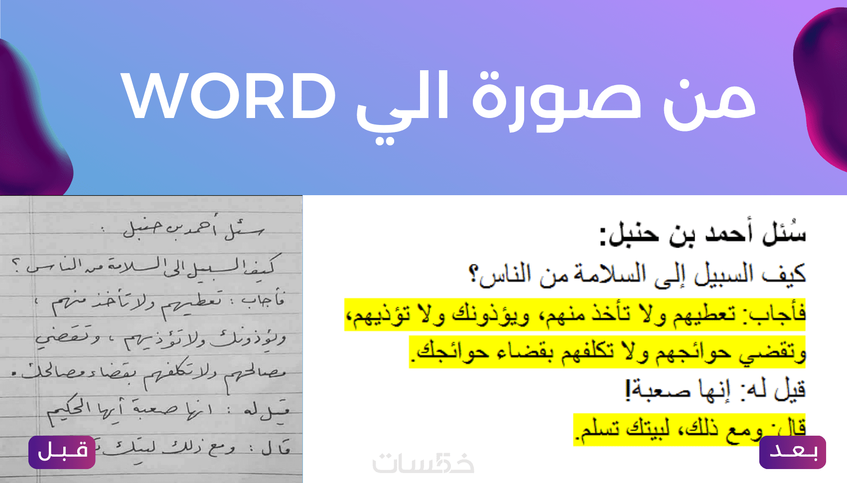 • النصوص المكتوبة بخط اليد: بإمكاني تحويل أي نص مكتوب بخط اليد إلى صيغة وورد قابلة للتحرير.
