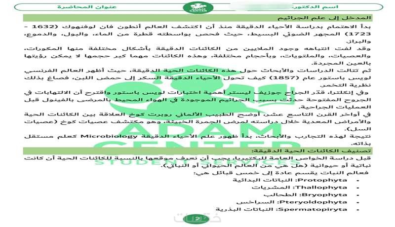 أقدّم خدمة كتابة المحاضرات بأسلوب أكاديمي منظم يساعد على إيصال المعلومة بطريقة واضحة وسهلة الفهم.
