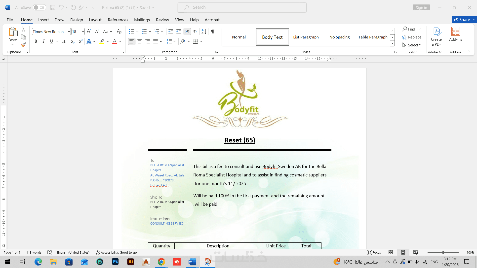 يمكنك الإستفسار و يمكنك التعديل إن لم يعجبك شئ معين في عملي سأقوم بالتعديل عليه بكل سرور حتي ترضي عن الخدمة المقدمة اليك لا يمكنني تسليم الملف إلا إذا تم الرضا عن الخدمة و تم تجربة الملفات و التأكد من عملها بشكل صحيح علي برنامج ميكروسوفت وورد.