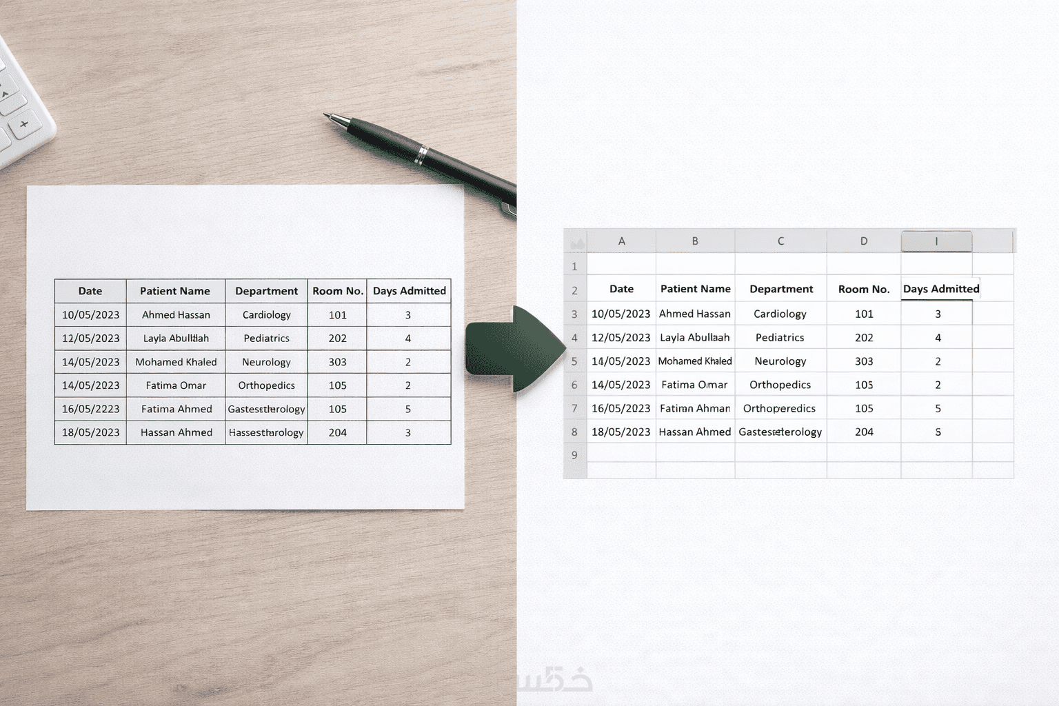 أقوم بترتيب الأعمدة والصفوف، وتنظيم البيانات بشكل احترافي، مع تدقيق للتأكد من عدم وجود أخطاء.