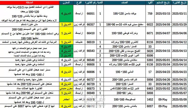 جداول منظمة وواضحة مع ترتيب الأعمدة والخلايا