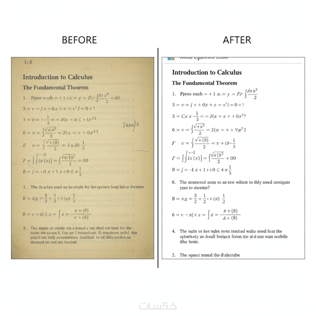 تشمل الخدمة كتابة النصوص بدقة عالية مع إدراج المعادلات الرياضية باستخدام Word Equation Editor، مع تنسيق منظم للعناوين والفقرات بما يتناسب مع الاستخدام الأكاديمي أو الجامعي.