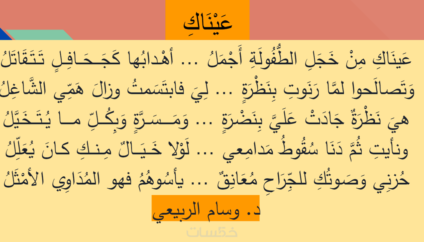 - فضلا عن العمل على تنمية مهاراتكم في صياغة التراكيب الشعرية وكيفية نسج الصورة الشعرية ورسمها بالكلمات.