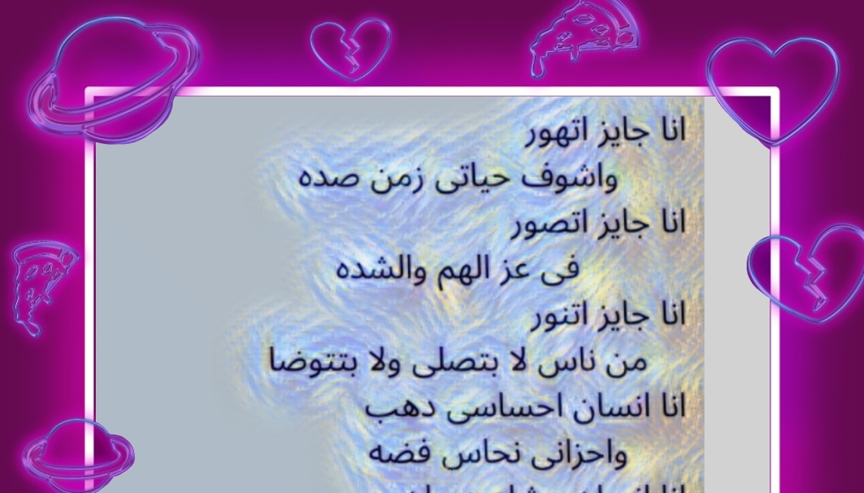 ولي قصائد كثيره حازت بالمركز الاول علي مستوي الجامعه مثل قصدة. هاوبعدين