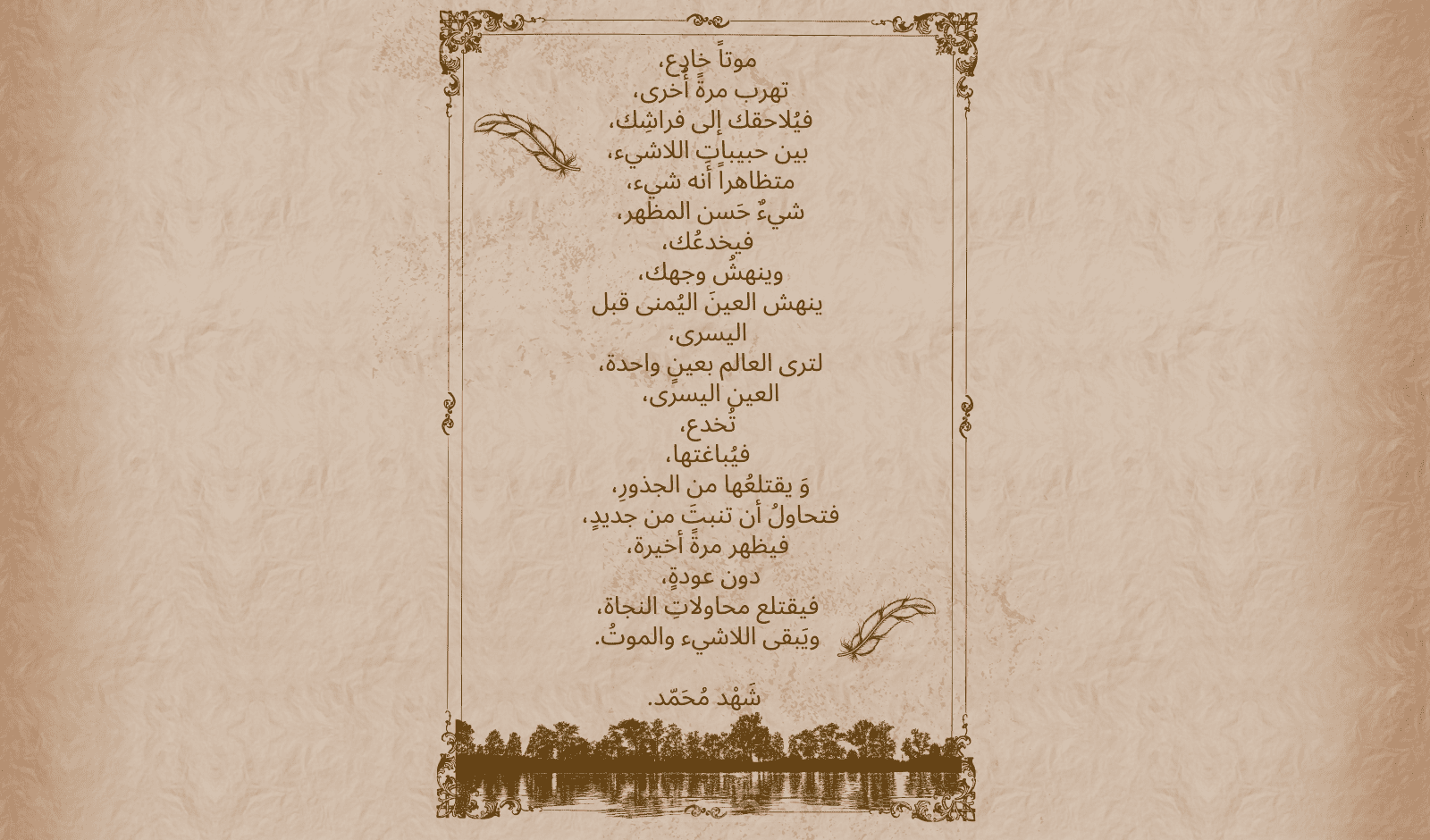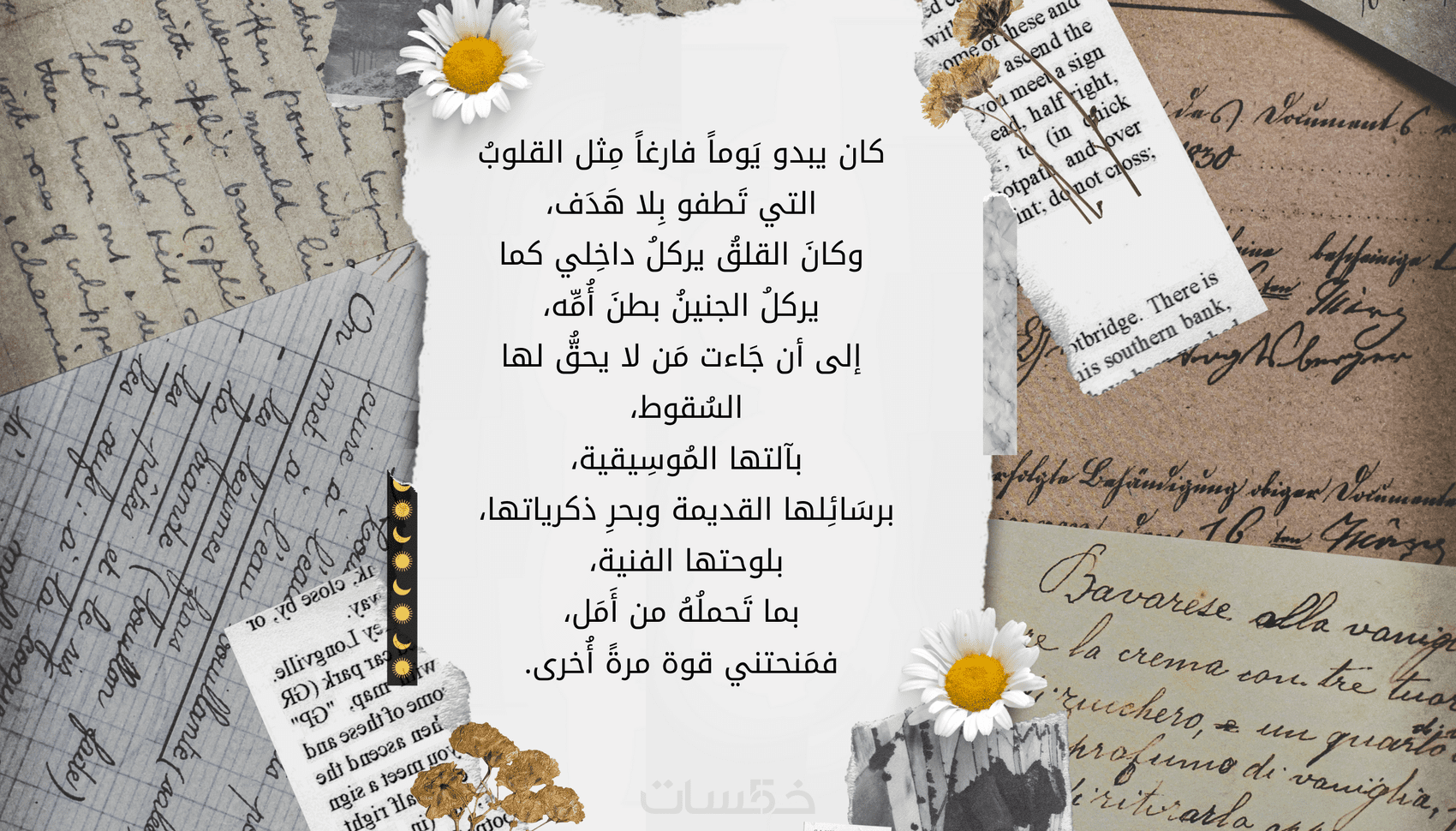 أقدم خدمة كتابة شعر حر بلغة فصيحة غنية حتماً ستلامس قلبك و تعبّر عن ما يجول بداخلك من خواطر و أفكار.