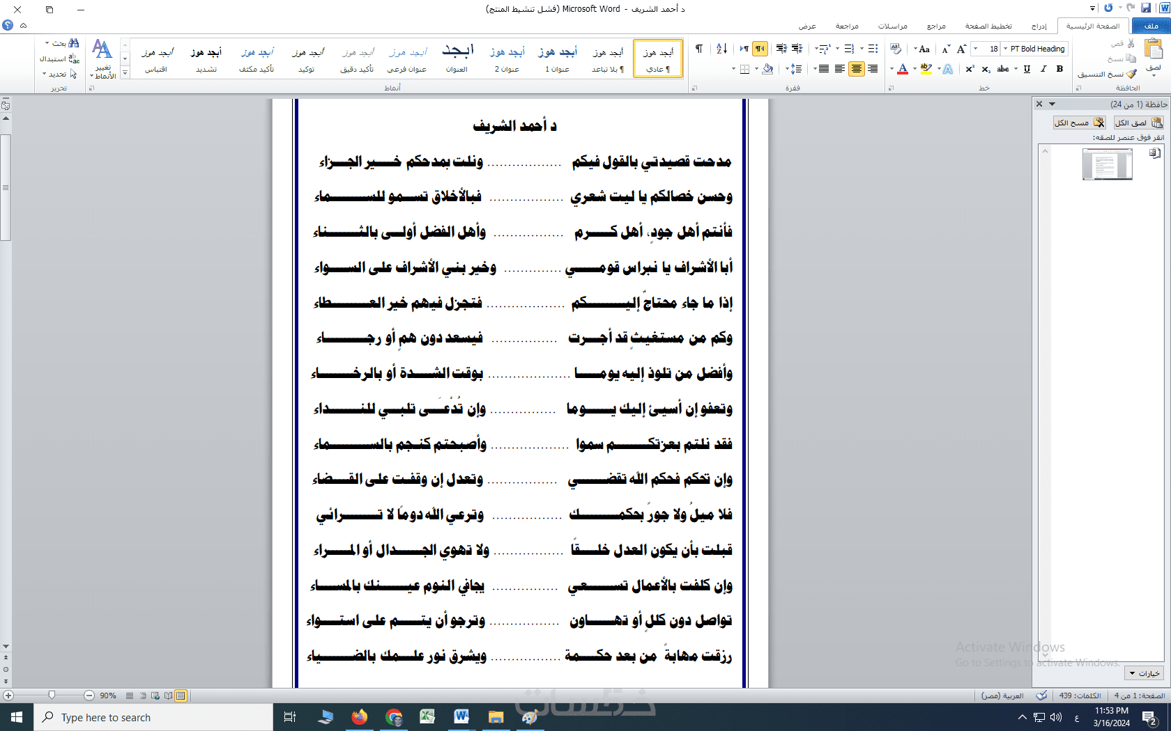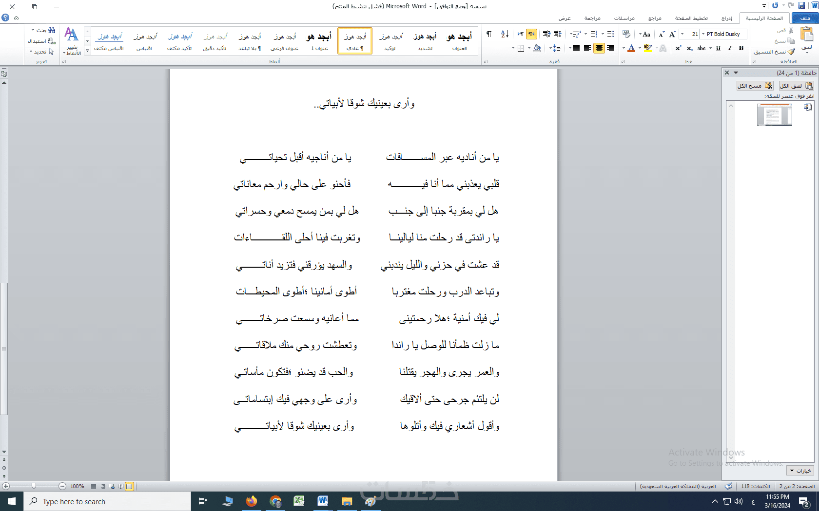 كتابة قصيدتين كل قصيدة خمسة عشر بيتاً
