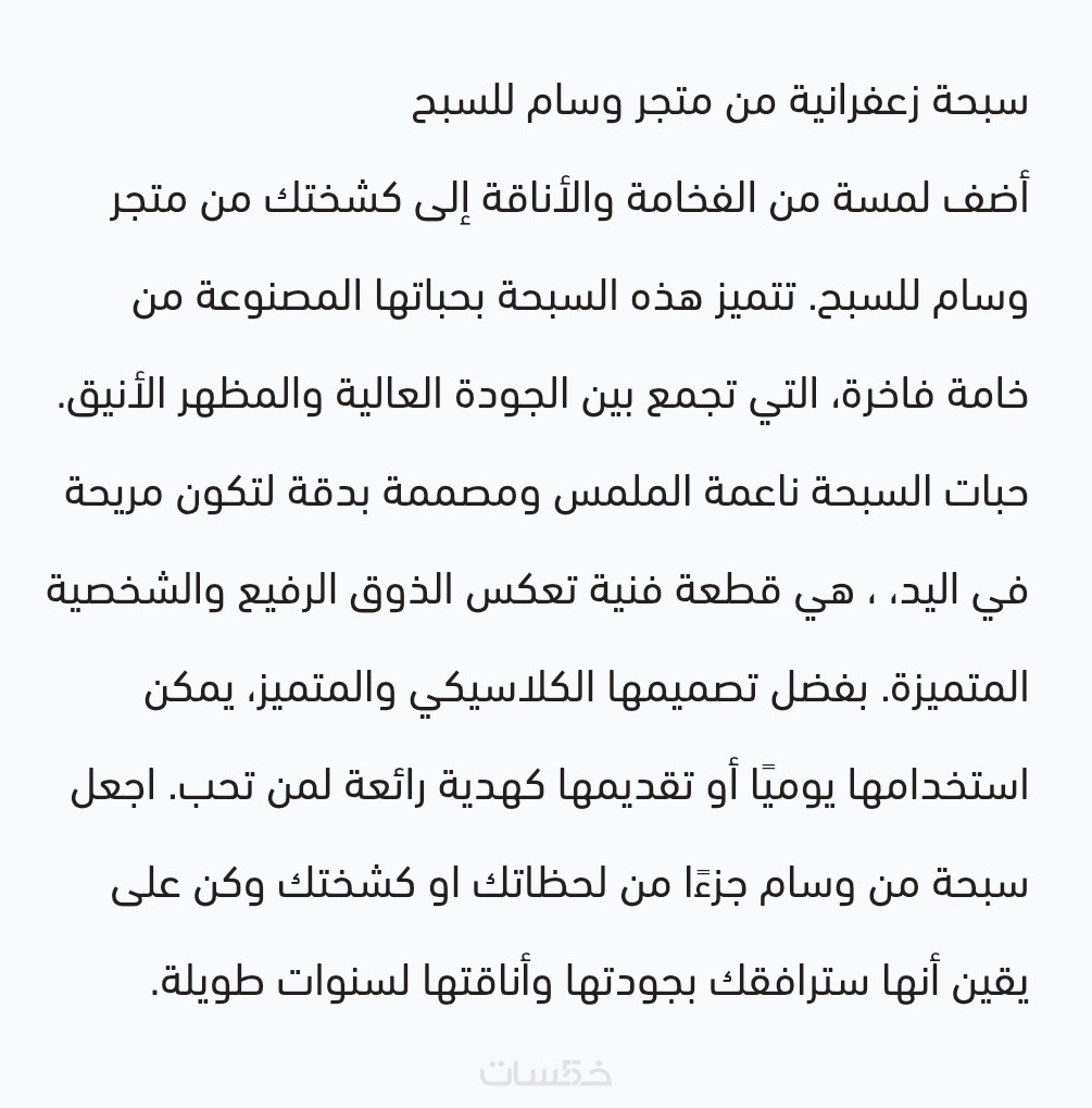 النص مناسب للنشر في المتاجر الإلكترونية أو وسائل التواصل الاجتماعي.