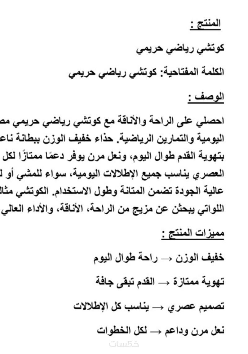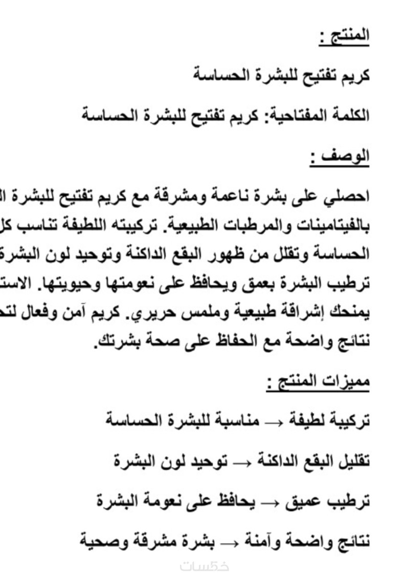 أقسّم الوصف لفقرات ونقاط سهل القراءة ومريح للعين سواء على المتاجر الإلكترونية أو السوشيال ميديا.