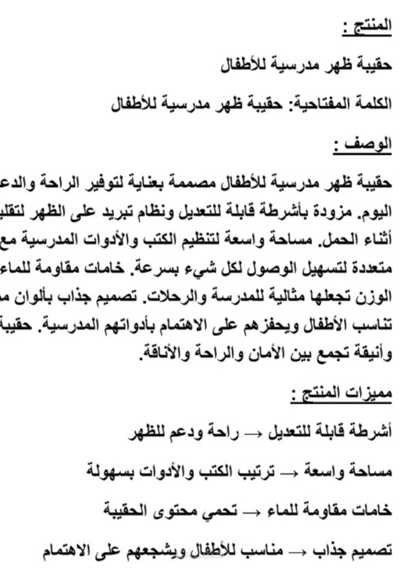 أستخدم كلمة مفتاحية مناسبة داخل الوصف بشكل طبيعي يساعد على تحسين ظهور المنتج في محركات البحث