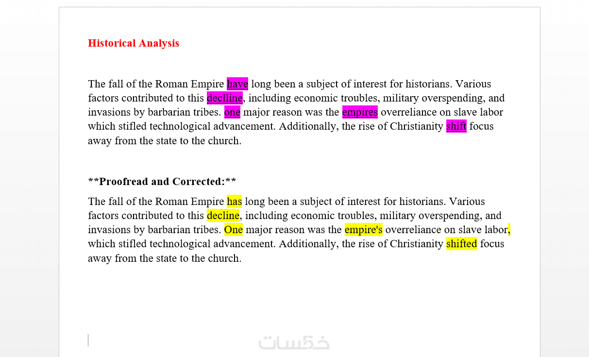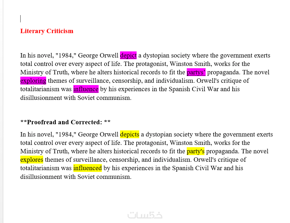 حصولي على الماجستير في اللغويات أعطاني خبرة كبيرة في هذا المجال حيث أحرص على خلو النص من أي خطأ قواعدي أو إملائي أو يتعلق بعلامات الترقيم والأحرف الكبيرة، ويمكن أيضاً استبدال بعض الكلمات لتناسب السياق إذا لزم الأمر.