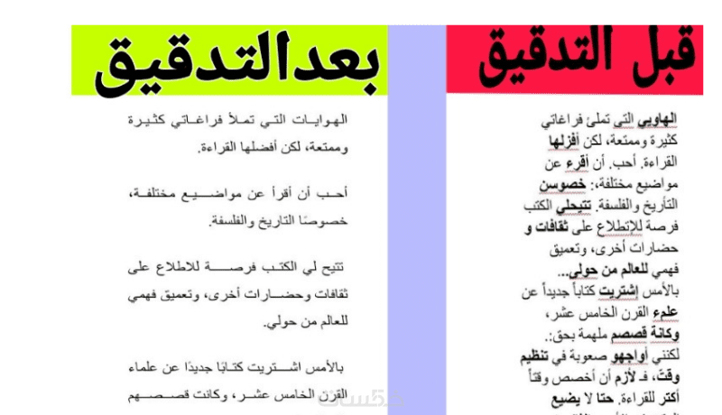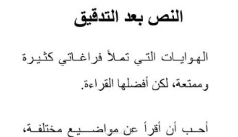 الخدمة تشمل التصحيح الإملائي وتنسيق علامات الترقيم فقط (لا تشمل التدقيق النحوي أو الإعراب).