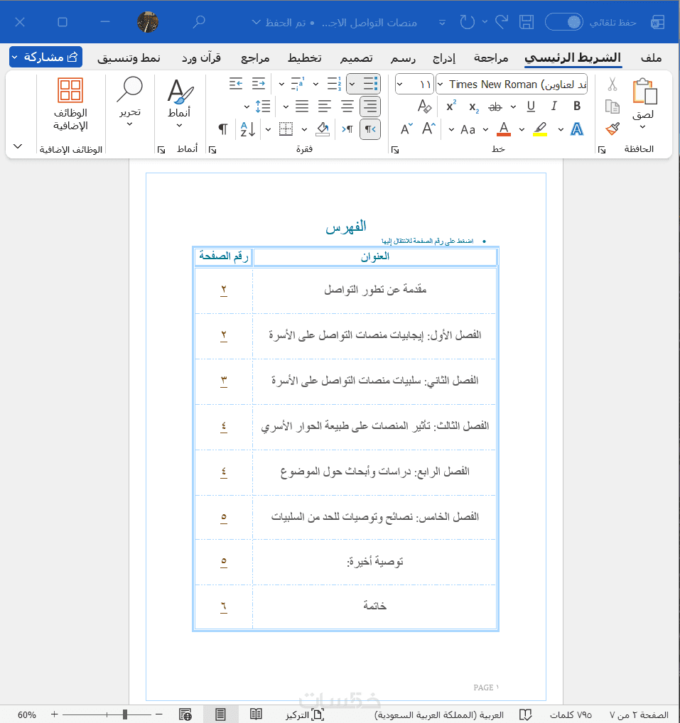 فهرسة ذكية: إنشاء فهرس محتويات آلي وتنسيق الجداول والصور.