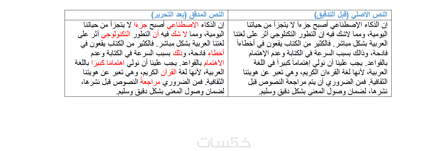 التدقيق النحوي والإملائي: تصحيح كافة الأخطاء النحوية، والصرفية، والإملائية بدقةٍ متناهيةٍ.