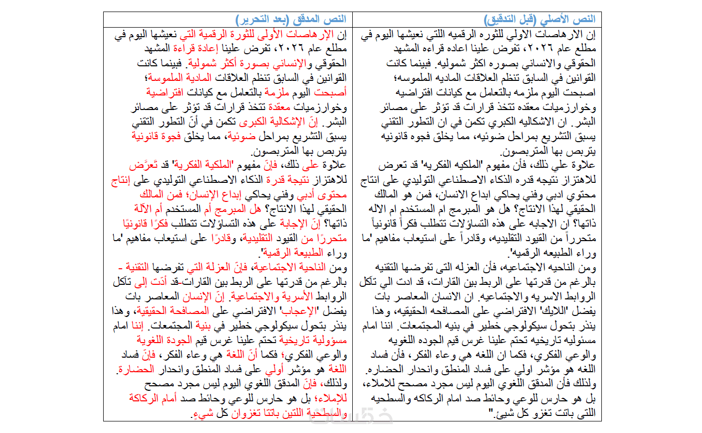 ضمان التدقيق البشري: تأكيد بأنّ العمل تمت مراجعته بعنايةٍ فائقةٍ بعيدًا عن البرامج الآلية، مع ضمان سلامة السياق والمعنى.