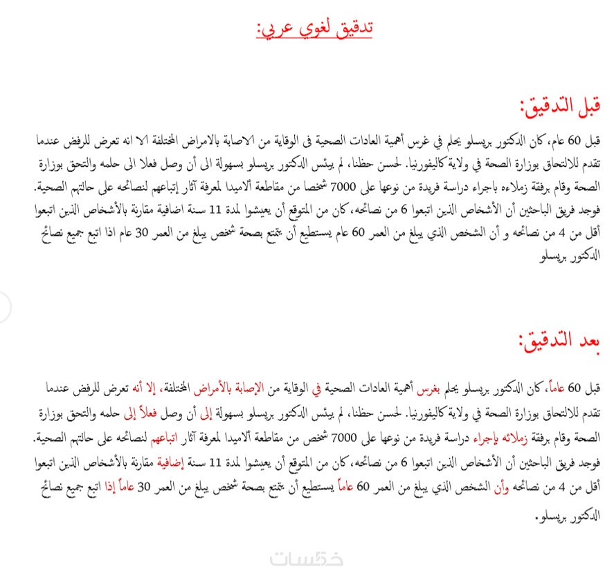 تدقيق وتصحيح لغوي يشمل: الأخطاء النحوية والإملائية والصرفية والدلالية