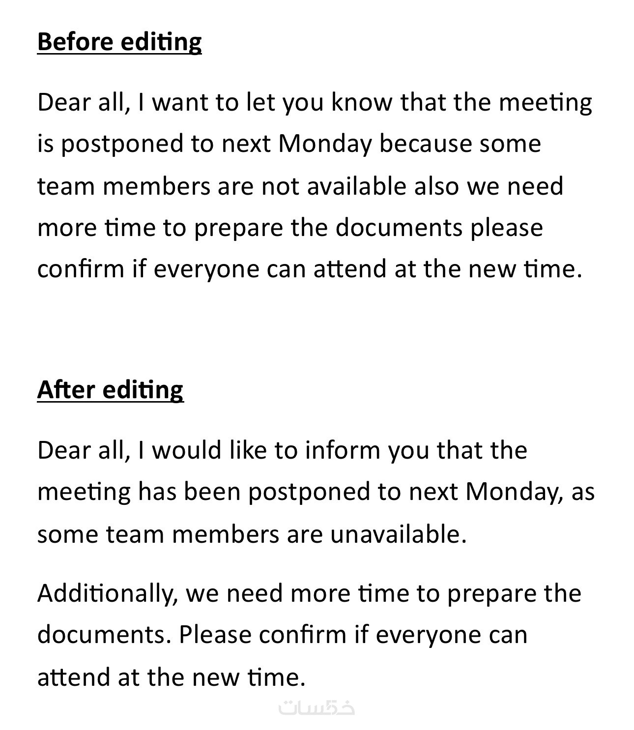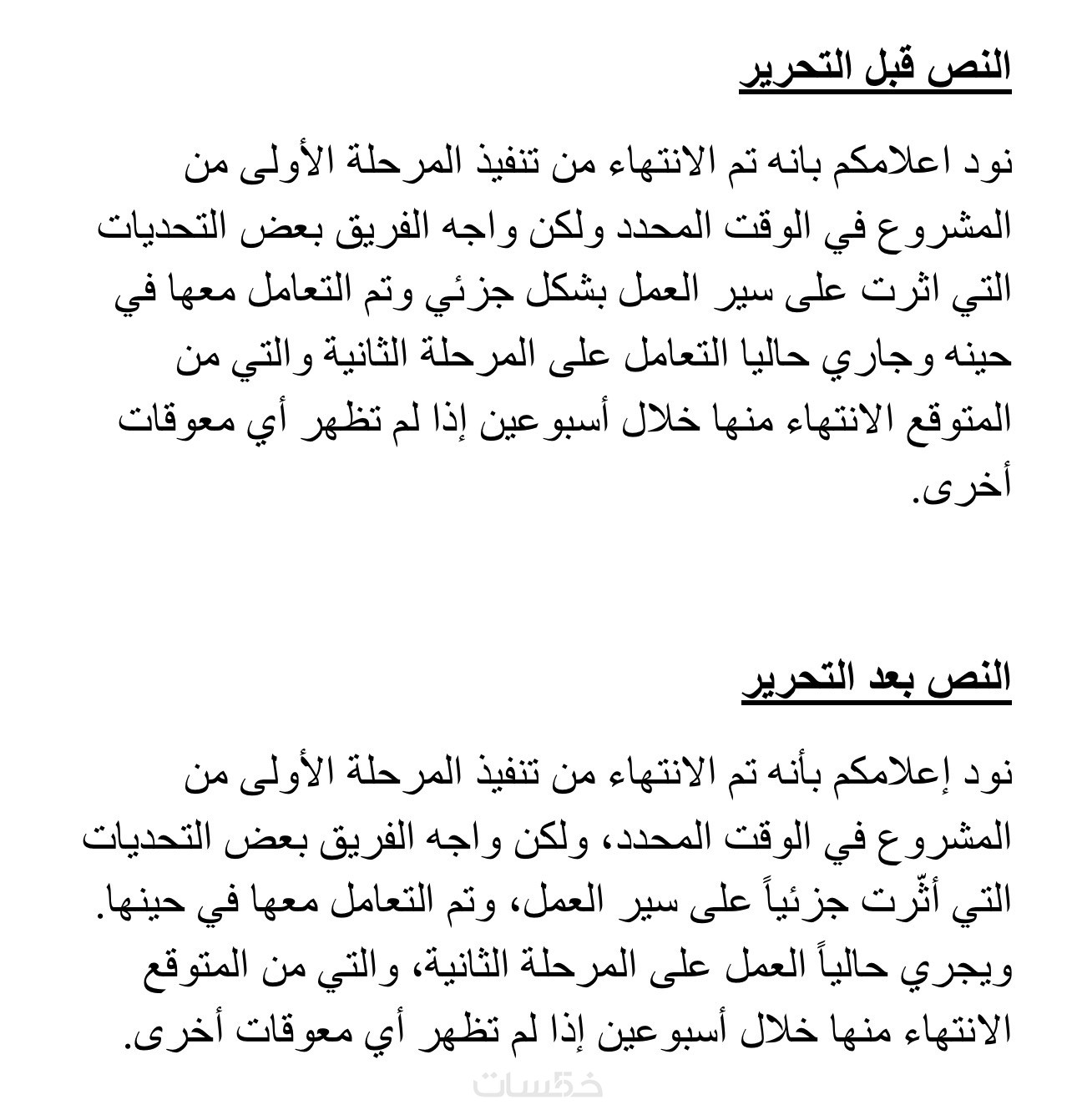 ستتسلم نصًا منقحًا وجاهزًا للاستخدام مباشرة، سواء للنشر، الطباعة، أو الإرسال الرسمي.
