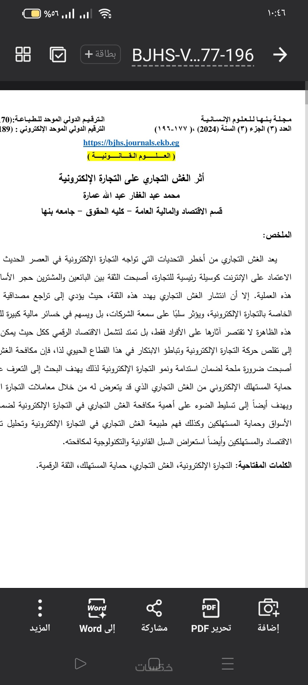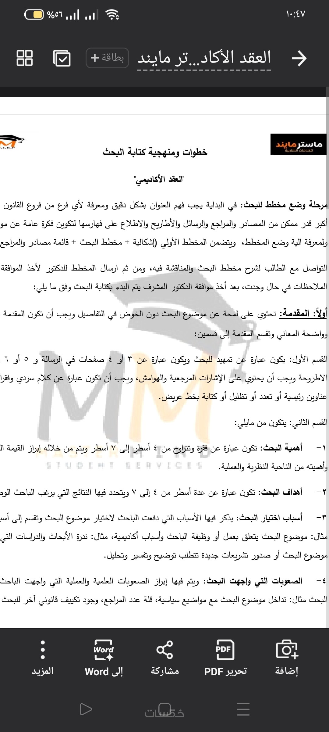 1 - بحث أكاديمي أو مقال علمي يعتمد على مصادر ومراجع متنوعة، ويتبع الأسلوب العلمي في التوثيق حسب متطلبات البحث مع التركيز على كلمات مفتاحية ذات نسبة بحث عالية.