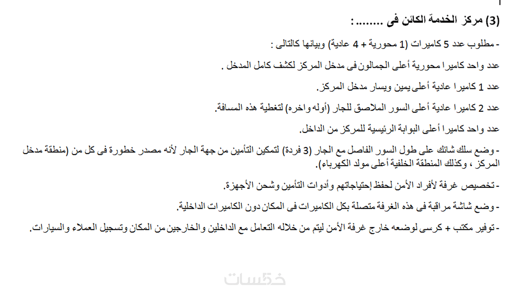 4- تجهيز عرض فنى مبدئى لتأمين المكان والأدوات المطلوبة للتأمين ، وكذا عدد الأفراد (أفراد الأمن) -( عدد 4 ورقات)