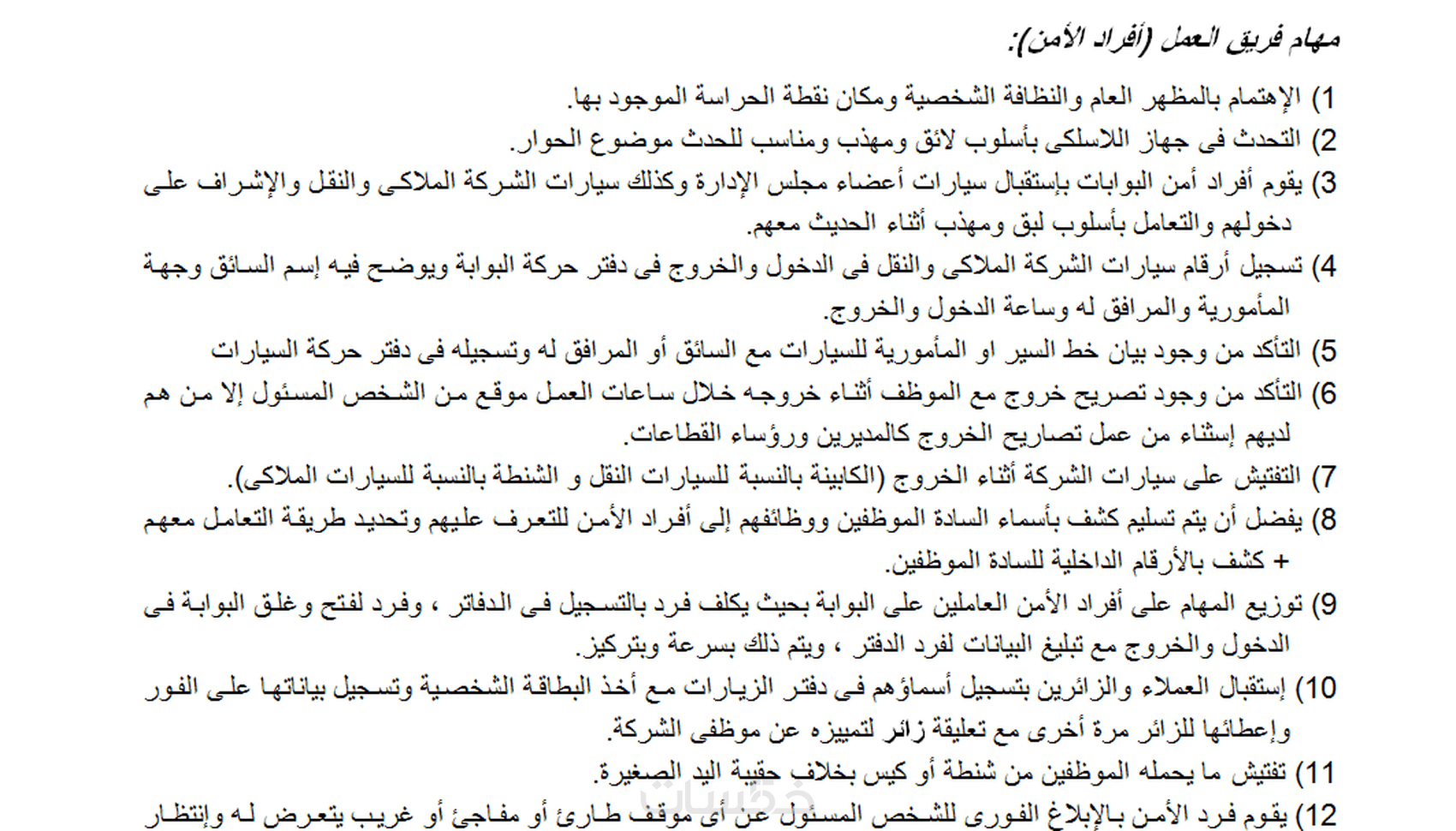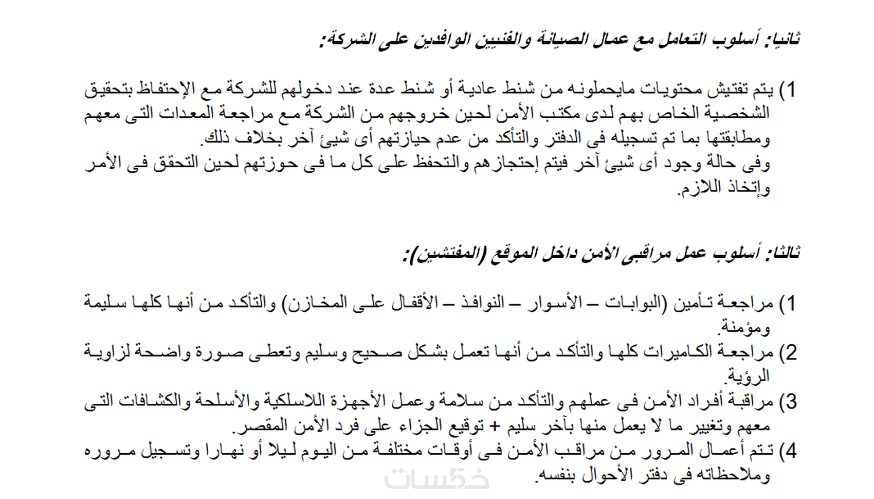 5- وضع خطة أمنية لمواجهة أى خطر قد يحدث للمكان وإجراءت التعامل معه (عدد 3 ورقات)