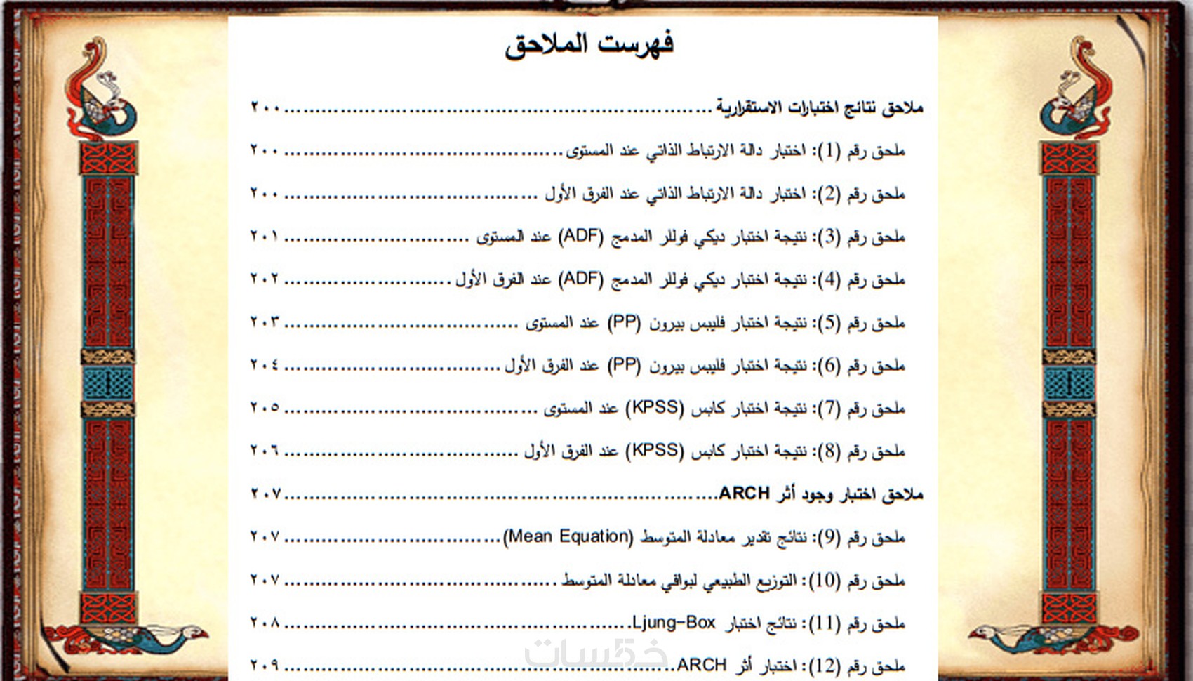 - تنسيق صفحة البسملة والآية القرآنية والجداول والاشكال البيانية.