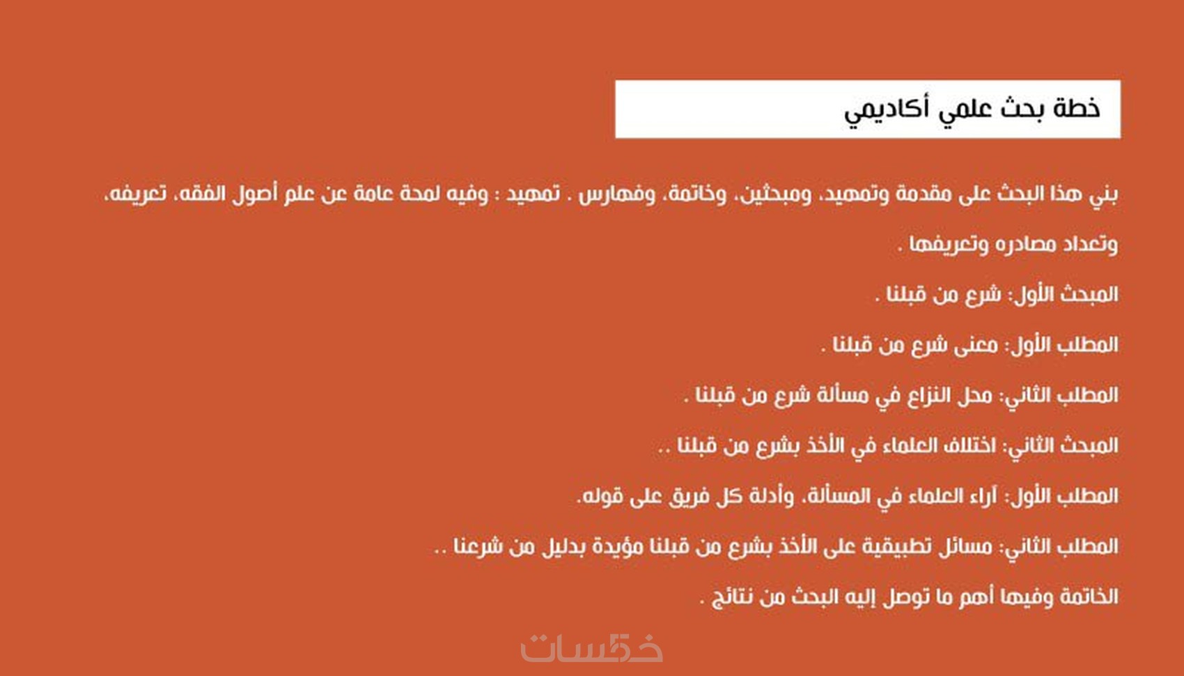 وتقديم خطة للبحث شاملة للاطلاع وابداء الرأي