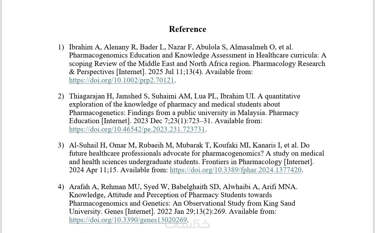 توثيق قائمة المراجع وفق نظام APA أو MLA أو Chicago أو Harvard (15 مرجع)