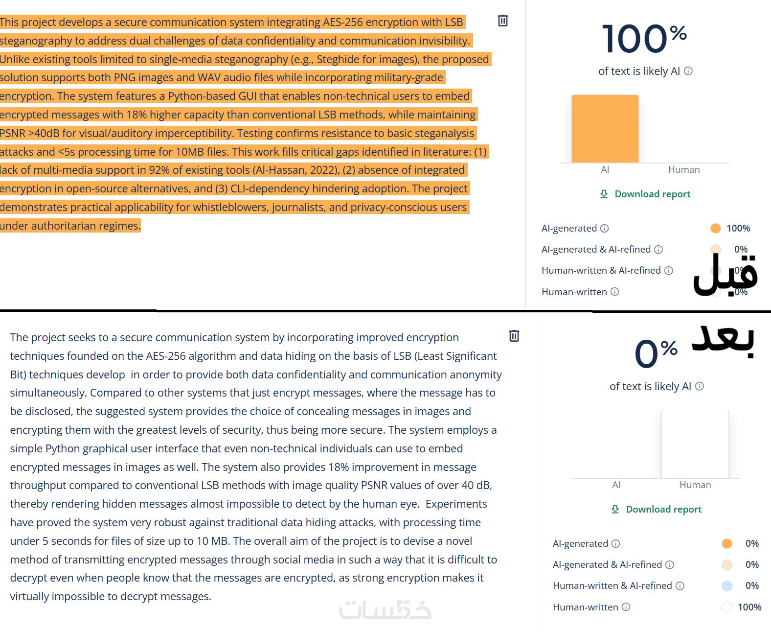 أقدّم لك خدمة احترافية لإعادة صياغة وتحرير النصوص الناتجة عن الذكاء الاصطناعي بأسلوب بشري طبيعي 100%، مع ضمان اجتياز أدوات الكشف المستخدمه غالبا .