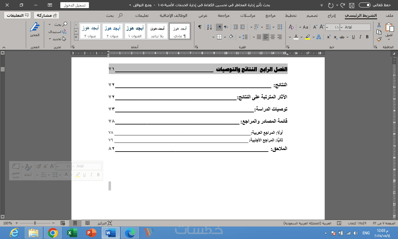 الفهرس الآلي وقائمة المحتويات في البحث العلمي من أهم الأجزاء من خلالها يتم معرفة العنصر ورقم الصفحات لكل جزء من أجزاء الرسالة وبالتالي سيتوجه إلى هذا الجزء مباشرة.
