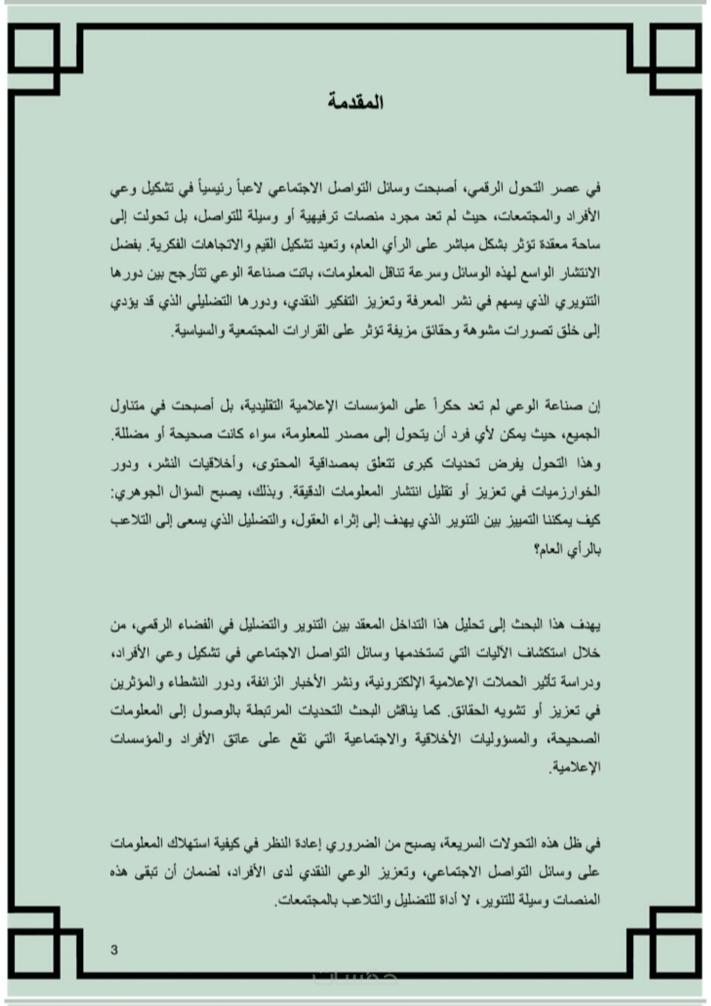 "السلام عليكم" اهلا بكم فى خدمتى " كتابة ابحاث فى مختلف التخصصات بشكل منسق و واضح." - اقدم لكم كتابة الابحاث فى مختلف التخصصات ( تربية ، ادارة ، تاريخ ، اجتماع ، علمية ، تكنولوجيا........). - تنسيق البحث حسب المطلوب ، وصياغة المحتوى باسلوب علمى خالى من الاخطاء الاملائية واللغويه. - كتابة البحث باللغه الانجليزيه او العربيه. - تسليم البحث بصيغتى Word او Pdf. - تشمل الخدمة على كتابة 4 صفحات مقابل خدمة. - يحتوى البحث على مصادر و مراجع .