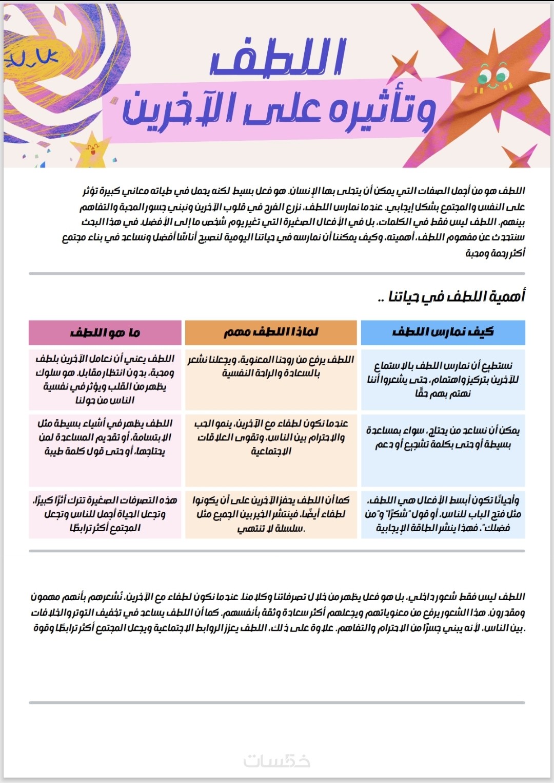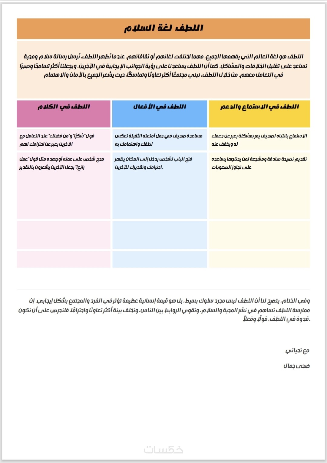 تنسيق خاص وتصميم مثل الأمثلة المرفقة (ألوان – خطوط – ترتيب بصري مميز )