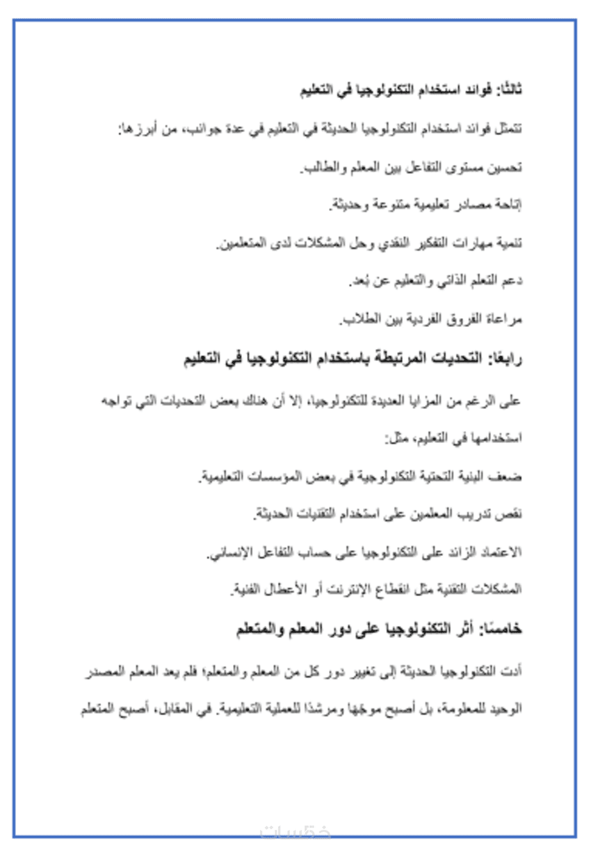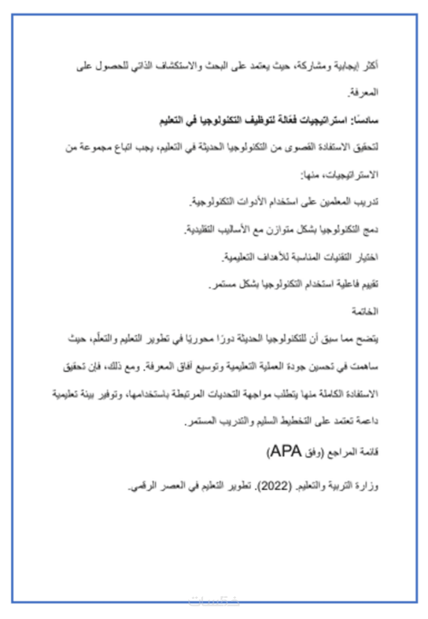 إضافة 3 صفحات إضافية (600 كلمة – 200 كلمة لكل صفحة).