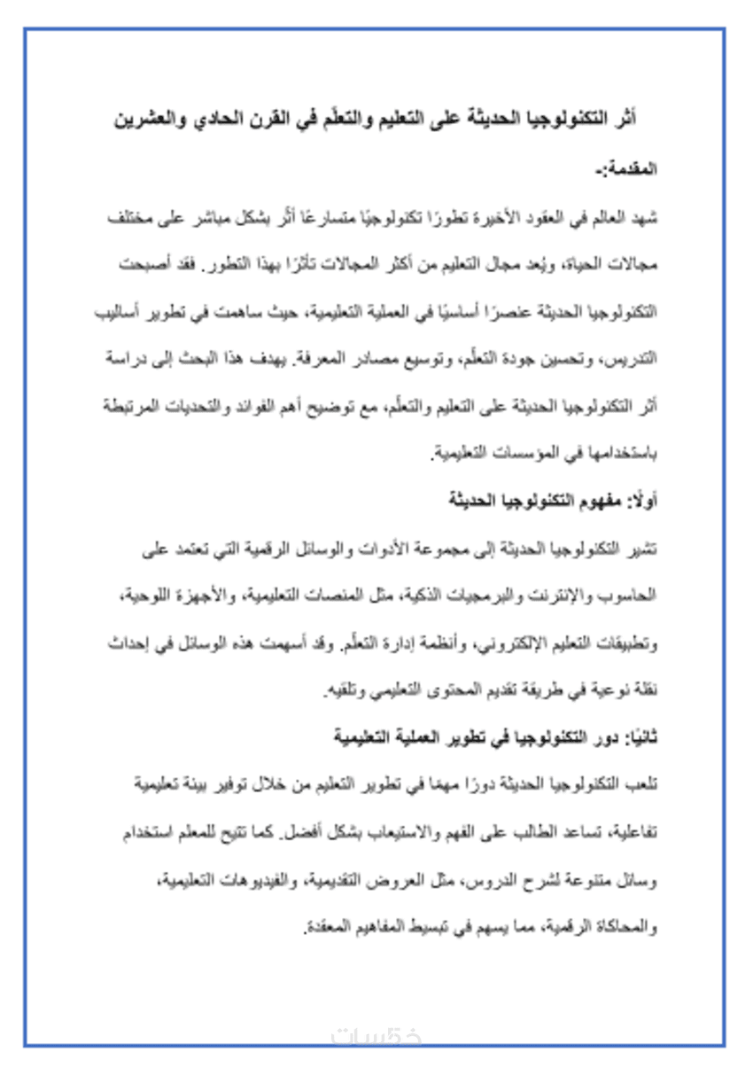 الخدمة لا تعتمد على محتوى إنشائي أو إعادة صياغة سطحية، وإنما تقديم بحث علمي متكامل يُكتب من الصفر، مع الالتزام الكامل بالأمانة العلمية، والمنهجية الصحيحة، والتوثيق الأكاديمي المعتمد.