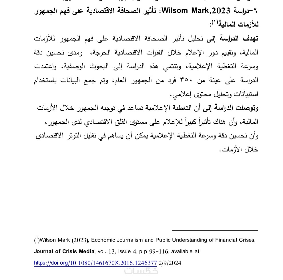 ملخص للدراسة من ٢٠٠ إلى ٢٥٠ كلمة يضم أهم عناصر الدراسة مع التوثيق.