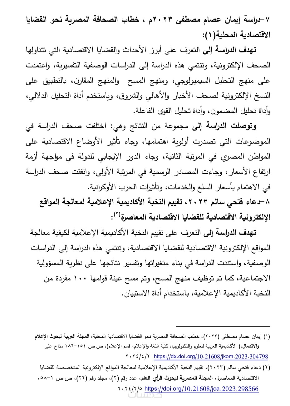 لدي خبرة أكاديمية في البحث الإعلامي والاقتصادي، والاطلاع على قواعد البيانات والمجلات العلمية، مع مراعاة الدقة والارتباط بموضوع البحث.