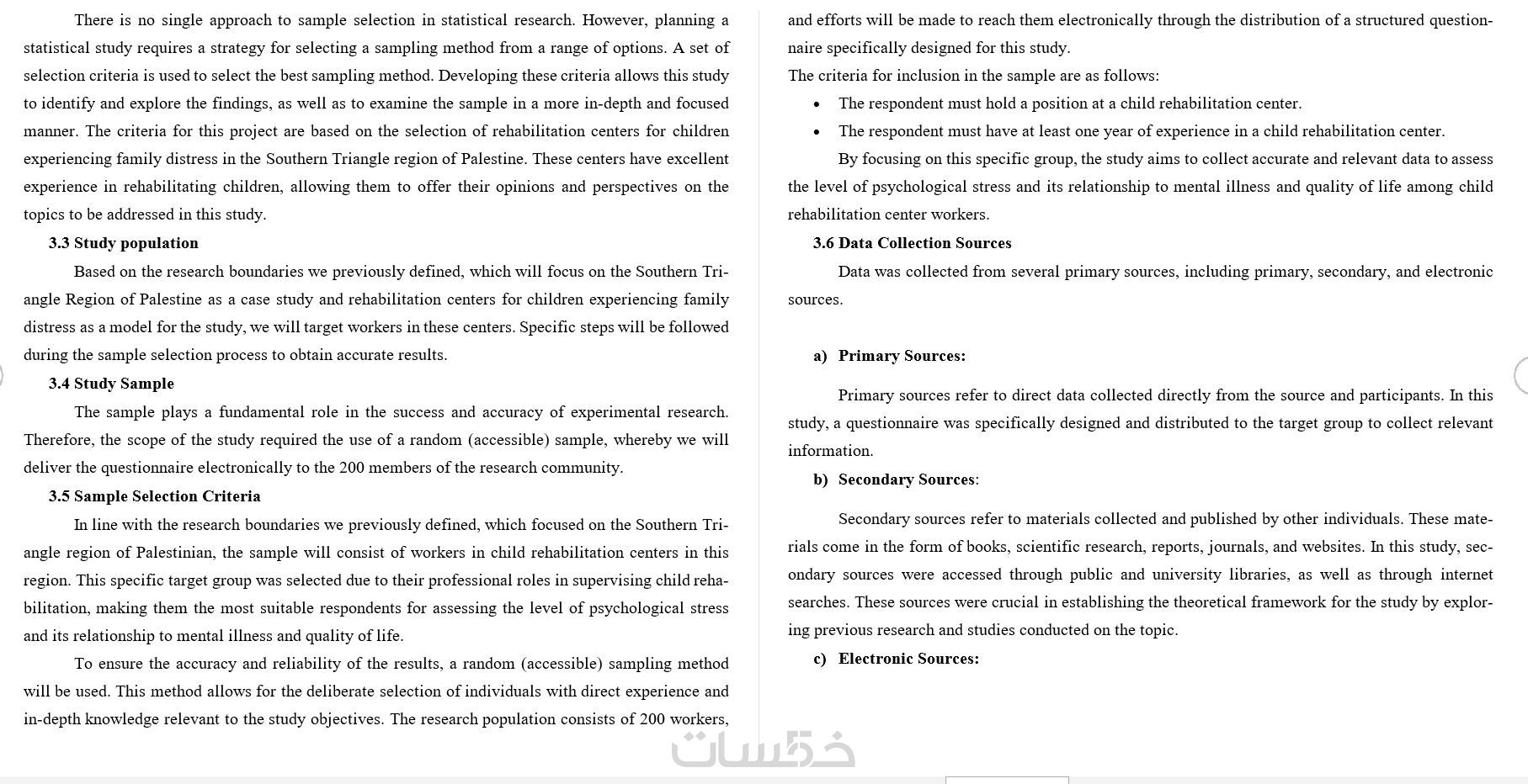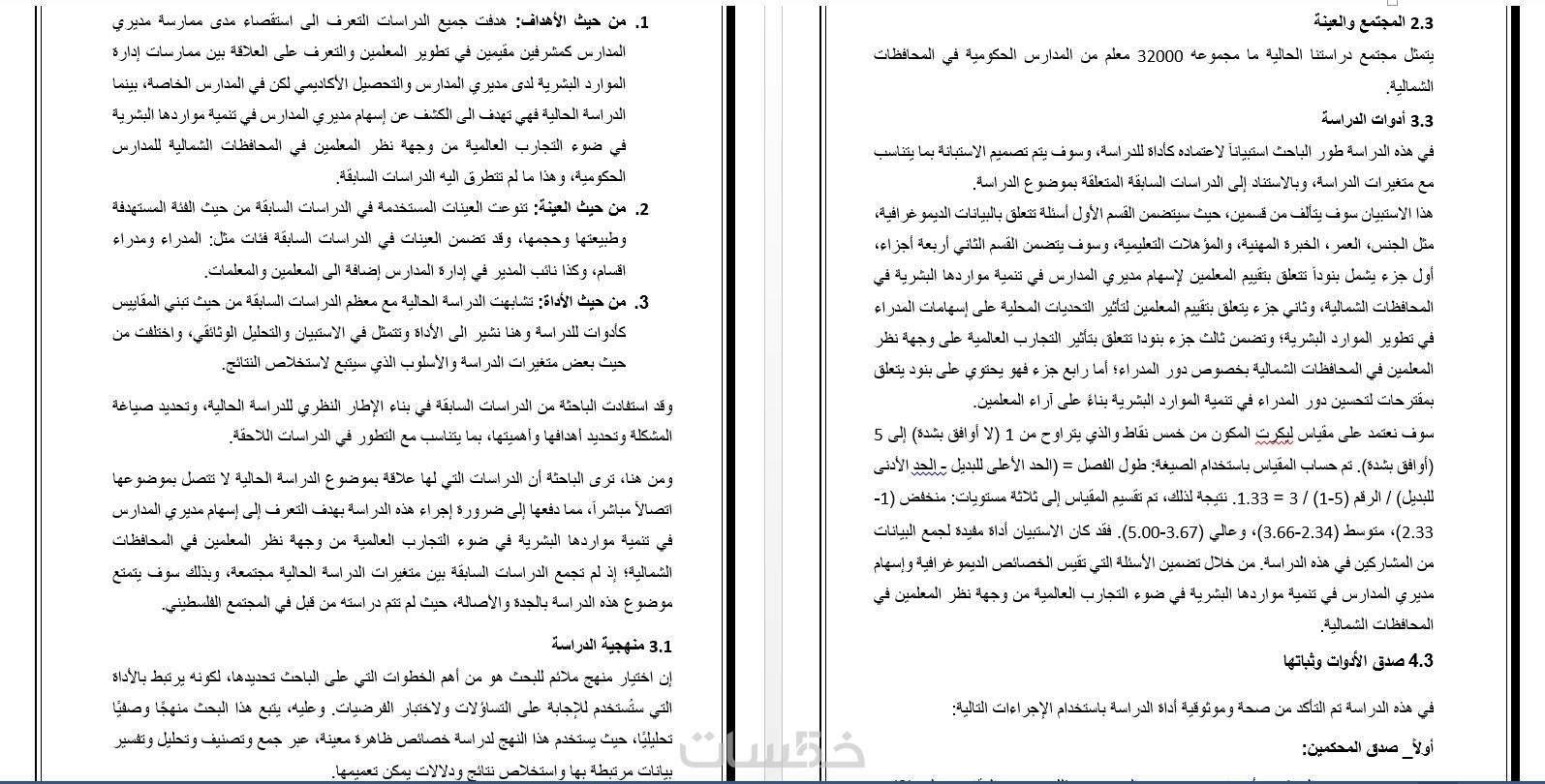 تتضمن توفير الإطار العام للدراسة، ومراجعة الأدبيات السابقة بمنهجية تحليلية، وما يليها من تعقيب، والمنهجية الكاملة وتحليلها ومناقشتها وصولاً إلى النتائج وتقديم التوصيات من خمس (5) صفحات، بواقع 250 كلمة للصفحة، مع إمكانية التوسّع بحسب متطلبات البحث وطبيعته.