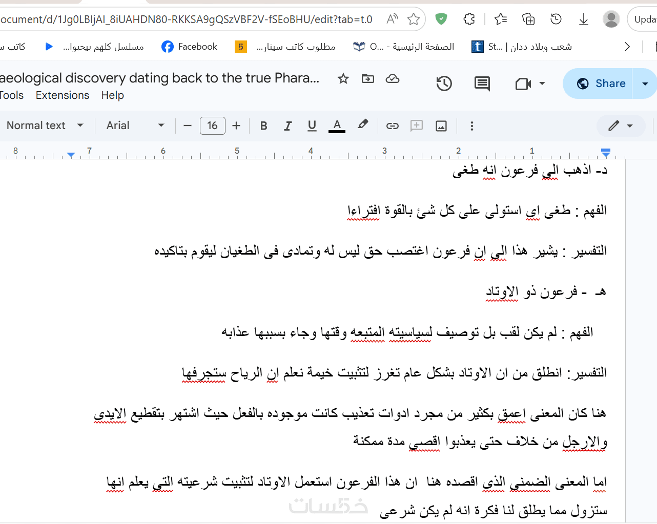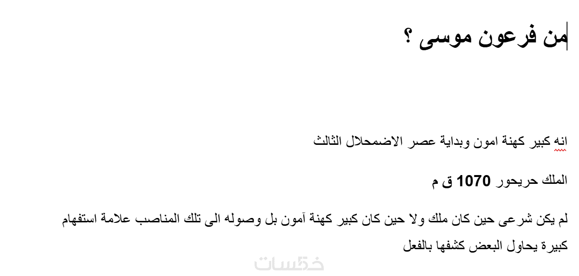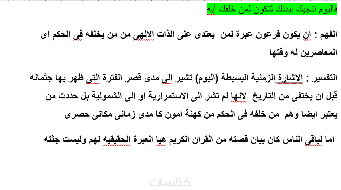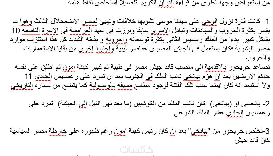 الحل : البحث والتدقيق فى القران باعتباره مصدرا اساسى لقصص الانبياء لوصف فرعون موسى وفهم الايات وتفكيكها