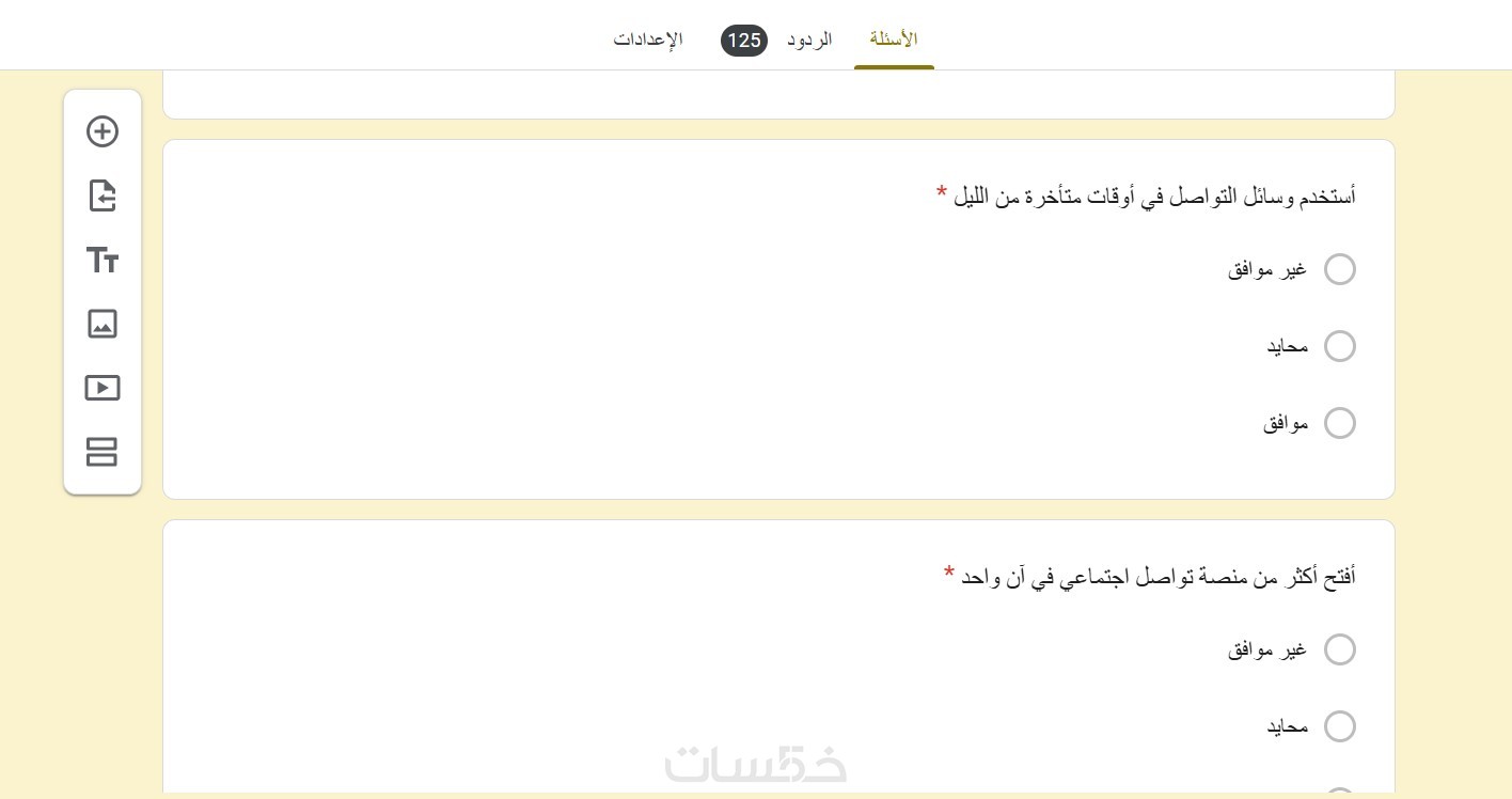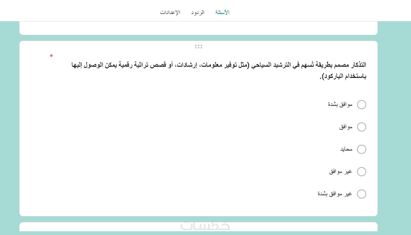 صياغة الأسئلة بشكل منطقي (اختيار من متعدد، قوائم منسدلة، مقاييس ليكرت الخماسية